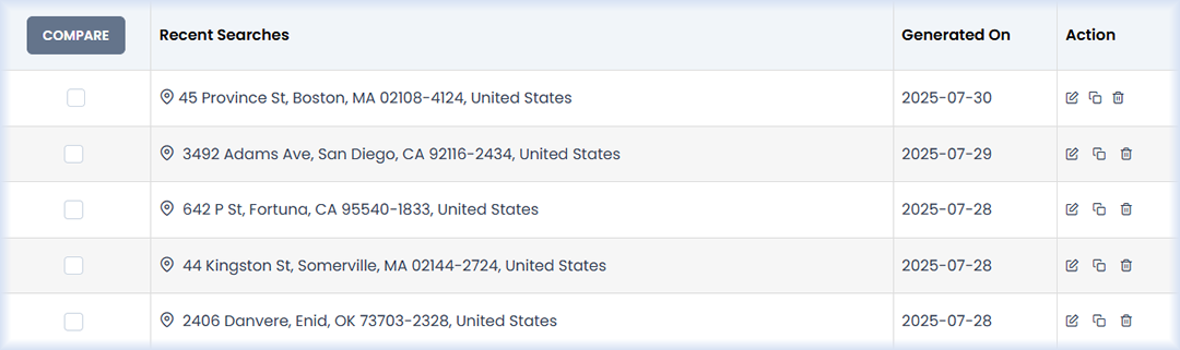 - Use the Compare feature to evaluate multiple addresses side-by-side.